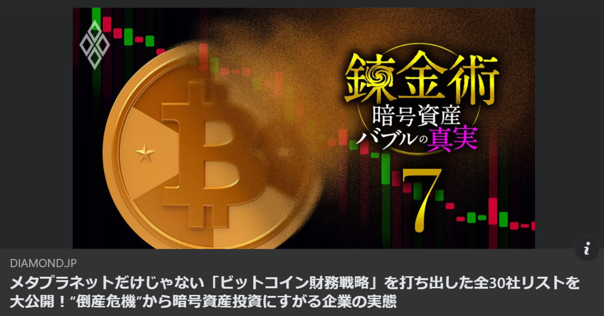 記事では、近年日本の上場企業の一部に広がっている「ビットコイン財務戦略」について、編集部による独自調査が紹介されている。資金調達力が低下した企業が、増資や社債発行で得た資金をビットコイン購入に充て、財務資産として保有する戦略を採用している例が相当数観測され、その中には継続企業の前提に関する注記や重要事象等が付されている企業も多く含まれるという。